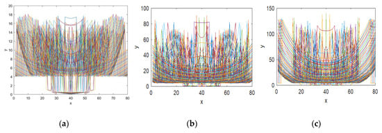 where . A control parameter provides the flexibility to generate different fractal data sequences. Even a researcher has the option to analyze the randomness of composite fractal function by considering other power values of the Mandelbrot set [,]. All generated fractal key sequences exhibit the capability to be used in the cryptosystem design because of its rough structure and irregular scalability in addition to the chaotic properties.