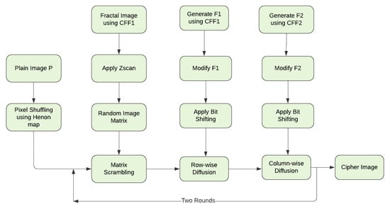 - Repeat steps (7)–(10) using one more time to get the final cipher image .