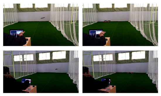 Four examples of human-drone interaction performed by hand gestures in [110].