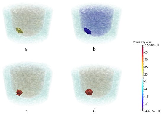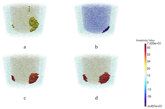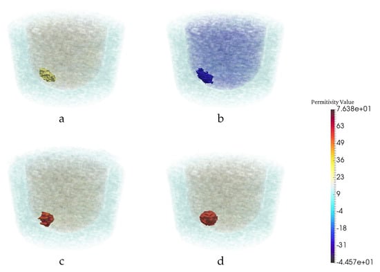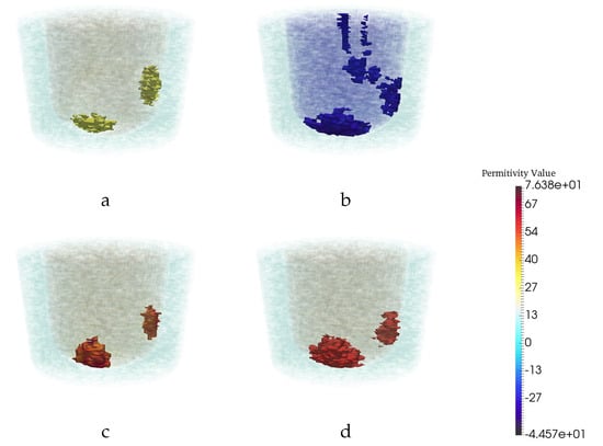 - Chew, W.C.; Wang, Y.M. Reconstruction of two-dimensional permittivity distribution using the distorted Born iterative method. IEEE Trans. Med. Imaging 1990, 9, 218–225. [Google Scholar] [CrossRef]
