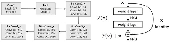- He, K.; Zhang, X.; Ren, S.; Sun, J. Deep residual learning for image recognition. In Proceedings of the 29th IEEE Conference on Computer Vision and Pattern Recognition, Las Vegas, NV, USA, 27–30 June 2016; pp. 770–778. [Google Scholar]