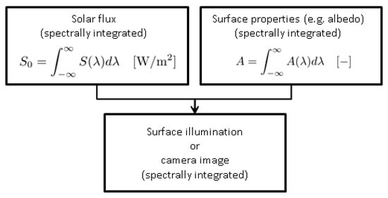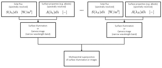 Generation of spectrally integrated images. All relevant parameters such as solar flux or optical properties of the surface are averaged and then used in the algorithm.