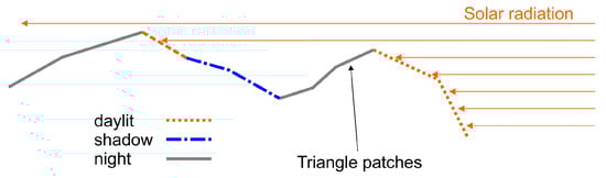 Direct radiation on the body surface. There are three types of triangles: day, night, and shadow.