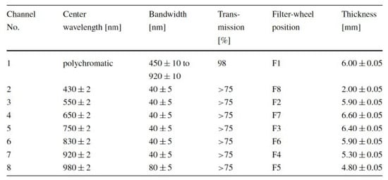 Filter settings of Framing Camera 2 of the DAWN mission []. For the study presented here, measurements using the clear filter have been utilized [].