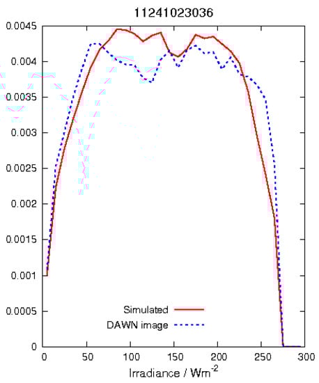 The illumination model has been validated using a statistical test to compare simulated images with a large number of DAWN acquired images. A good statistical match is found in general.