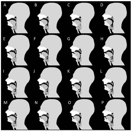 - Toutios, A.; Lingala, S.G.; Vaz, C.; Kim, J.; Esling, J.H.; Keating, P.A.; Gordon, M.; Byrd, D.; Goldstein, L.; Nayak, K.S. Illustrating the Production of the International Phonetic Alphabet Sounds Using Fast Real-Time Magnetic Resonance Imaging. In Proceedings of the Interspeech 2016, San Francisco, CA, USA, 8–12 September 2016; pp. 2428–2432. [Google Scholar] [CrossRef]