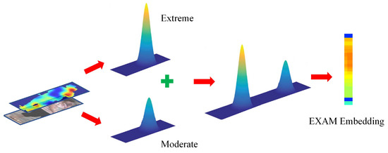 To alleviate this problem, it is better to incorporate the discriminative feature learning and salient attention deducing in an end-to-end network, because they can benefit from each other in the training process [12,13,14]. Thus, in this paper we propose a framework to learn EXtreme And Moderate (EXAM) feature embeddings to deduce the attention at both global and local levels for Re-ID. It may sound oxymoronic to group the two terms “extreme” and “moderate” together. But in fact, they are two inherent aspects of human body appearance: saliency and commonality. Saliency features that are from the most attention attractive visual cues reflect the “extreme” aspects of the body appearance, while “moderate” refers to the common features associated with the concepts of smoothness and consistency without the influence of noise and outliers. If the network can capture both types of attentive information from a person image, the discriminative ability of the learned model would be significantly increased.