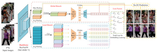 According to the experimental results, local feature descriptors usually perform better, but valuable global feature information is completely ignored. At present, one of mainstream Re-ID approaches combines global features with local part-based attention to make the model robust to variations [9,10], in which local features are learned under the visual attentions deduced from the predefined body parts.