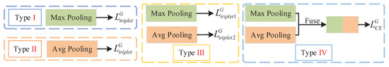 Choosing the right loss functions for different embedding learning is crucial. CE loss is used to determine the feature representation to match the labeled target. Global variant Type 5 selects the triplet loss for the fused embedding. Without the supervision of CE loss, the learned feature representation of this variant lacks discriminative ability. Thus, its performance was deteriorated substantially compared with the default, i.e., decreased by 2.5%, 4.7% for Rank 1 and mAP respectively. Triplet loss provides an assistive role for feature representation learning, as it pushes the data from different identities apart in the feature space, while pulling the data closer if it belongs to the same person. Type 6 does not use any triplet loss, but instead uses CE loss for all three embeddings. Without the assistance from the triplet loss, the learning burden of the feature representation is increased. Thus, the performance of Type 6 is also decreased by 0.27% and 0.54% on Rank 1 and mAP respectively.