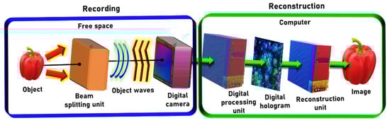 - Goodman, J.W.; Lawrence, R.W. Digital image formation from electronically detected holograms. Appl. Phys. Lett. 1967, 11, 77–79. [Google Scholar] [CrossRef]