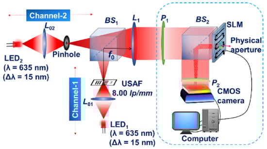 Several aspects of the above description of FINCH have been implemented in many ways. For example, beam splitting and different beam modulation were originally performed by spatial multiplexing of two different diffractive optical elements on the same single optical channel [1]. Another method of multiplexing two different diffractive optical elements on one optical channel is termed polarization multiplexing [10]. In this method, the light propagates in two orthogonal polarizations, each of which is modulated differently by at least one of the optical devices of the system. Other researchers proposed using a glassy beamsplitter and two different interferometer channels for the same purpose [11]. Another aspect of FINCH is the number of camera shots needed for reconstructing the observed scene. To remove the unnecessary images known as the twin image and the bias term, some researchers use the phase-shifting procedure implemented on three [1] or four [12] camera shots. Other researchers use a single camera shot and different ways to eliminate the twin image and the bias term [13,14,15,16].