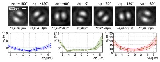 - Baránek, M.; Bouchal, P.; Šiler, M.; Bouchal, Z. Aberration resistant axial localization using a self-imaging of vortices. Opt. Express 2015, 23, 15316–15331. [Google Scholar] [CrossRef]
