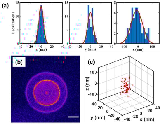 - Huang, B.; Wang, W.; Bates, M.; Zhuang, X. Three-dimensional super-resolution imaging by stochastic optical reconstruction microscopy. Science 2008, 319, 810–813. [Google Scholar] [CrossRef] [PubMed]