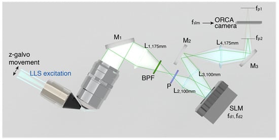 - Potcoava, M.; Mann, C.; Art, J.; Alford, S. Spatio-temporal performance in an incoherent holography lattice light-sheet mi-croscope (IHLLS). Opt. Express 2021, 29, 23888–23901. [Google Scholar] [CrossRef]