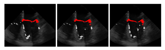 - Sultan, M.S.; Martins, N.; Costa, E.; Veiga, D.; Ferreira, M.J.; Mattos, S.; Coimbra, M.T. Tracking large anterior mitral leaflet displacements by incorporating optical flow in an active contours framework. In Proceedings of the 2017 39th Annual International Conference of the IEEE Engineering in Medicine and Biology Society (EMBC), Jeju Island, Korea, 11–15 July 2017; pp. 3244–3247. [Google Scholar]
