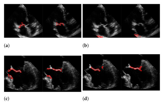 - Sultan, M.S.; Martins, N.; Veiga, D.; Ferreira, M.J.; Coimbra, M.T. Tracking of the anterior mitral leaflet in echocardiographic sequences using active contours. In Proceedings of the 2016 38th Annual International Conference of the IEEE Engineering in Medicine and Biology Society (EMBC), Orlando, FL, USA, 16–20 August 2016; pp. 1074–1077. [Google Scholar]