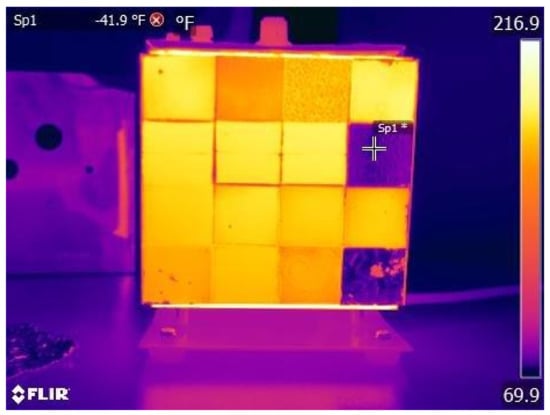 A trinocular vision system [57] of one optical camera and a thermal camera was calibrated with a plastic board with 25 holes with 25 miniature bulbs arranged at each hole to emit heat and light. This method successfully obtained the required calibration parameters for the thermal sensor for their application. Vida et al. proposed that a geometric mask-based approach could obtain an improvement of 78% compared to the conventional method of a heated chessboard [58]. The work described an A2 board that was built from Medium Density Fibreboard (MDF) due to its good thermal insulation properties, and although it required substantial warming time, the part was laser cut with 40 × 40 mm squares across the board.