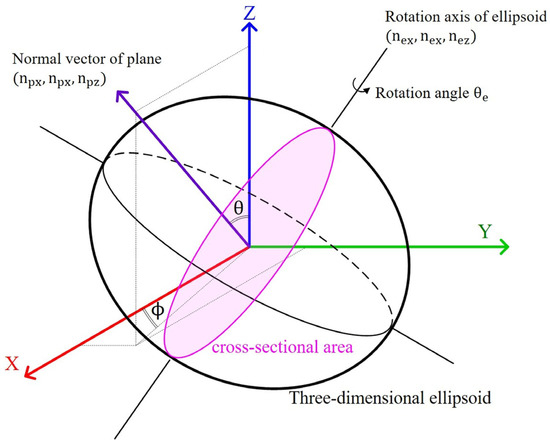 If the direction vector starting at the origin is defined as Equation (2), the cross-sectional area of an ellipsoid with Equation (2) as its normal vector is expressed by Equation (3) [32,33,34].