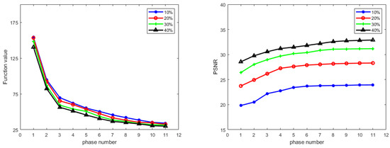 Meta-learning expands a new paradigm for supervised learning—the purpose is to quickly learn multiple tasks. Meta-learning only learns task-invariant parameters once for a common feature that can be shared with four different tasks, and each provides task-specific weighting parameters according to the principle of “learning to learn”. In conventional learning, the network parameter needs to be trained four times with four different masks since the task-invariant parameter cannot be generalized to other tasks, which is time-intensive. From Table 1 and Table 2, we observe that a small CS ratio needs a higher value of . In fact, in our model (11), the task-specific parameters behave as weighted constraints for task-specific regularizers, and the tables indicate that lower CS ratios require larger weights to be applied for the regularization.