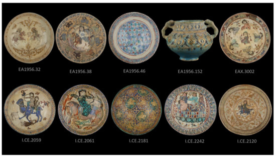 - Watson, O. Ceramics of Iran, 1st ed.; Yale University Press: New Haven, CT, USA, 2020; pp. 242–280. [Google Scholar]