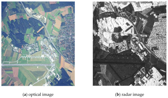 However, the radar data received from the UAV aircraft does not always reflect the whole location setting in the observed area of the terrain. It is hard to solve the problems of zone classification, object recognition, boundary detection of small objects, through radar means [10]. In this regard, tasks of improvement of quality, accuracy, and information content of displaying relevant information about the land surface are especially important. One of the options for a qualitative increase in the information content of the land surface is to use additional location sources of other physical nature [10,11,12,13] in combination with radar facilities.
