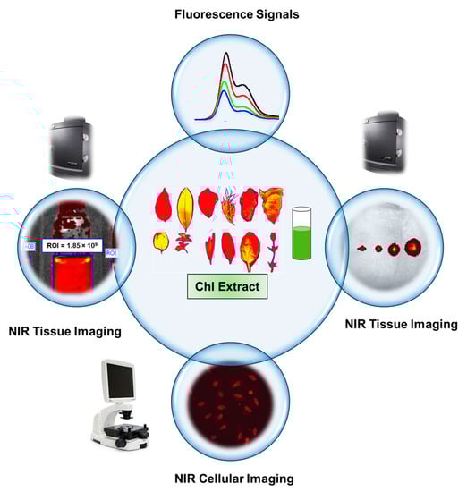 In this context, we utilize a natural and biocompatible NIR fluorescent probe, chlorophyll, extracted from various dietary sources. Natural chlorophyll (Chl) is an essential biomolecule for photosynthesis in plants and its molecular structure is similar to the NIR fluorescent porphyrin; therefore, Chl has various imaging and therapeutic benefits. Hence, Chl may be an ideal candidate for cellular imaging, including cancer imaging and therapy, for its non-toxicity and abundance in nature [].