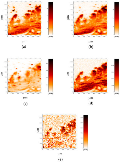 - Osterode, W.; Falkenberg, G.; Höftberger, R.; Wrba, F. Iron, copper, zinc and bromine mapping in cirrhotic liver slices from patients with hemochromatosis studied by μSRXRF in continuous scanning mode, Spectrochim. Acta Part B Atom. Spectrosc. 2007, 62, 682–688. [Google Scholar] [CrossRef]