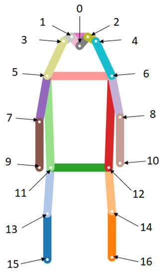 | 1. Left eye | 6. Right shoulder | 11. Left hip | 16. Right ankle |