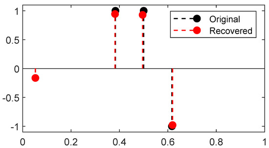 - Candes, E.; Romberg, J.; Tao, T. Robust Uncertainty Principles: Exact Signal Reconstruction from Highly Incomplete Frequency Information. IEEE Trans. Inf. Theory 2006, 52, 489–509. [Google Scholar] [CrossRef] [Green Version]