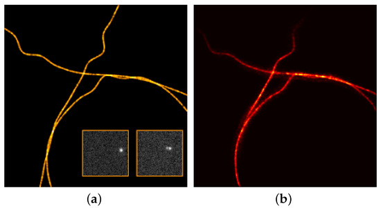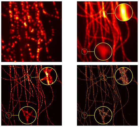 - Sage, D.; Kirshner, H.; Pengo, T.; Stuurman, N.; Min, J.; Manley, S.; Unser, M. Quantitative evaluation of software packages for single-molecule localization microscopy. Nat. Methods 2015, 12, 717–724. [Google Scholar] [CrossRef]