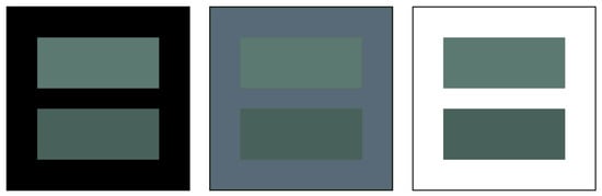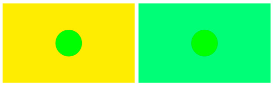 Assumption (4), however, is not coherent with the so-called crispening effect represented in Figure 2, where the same couple of color stimuli is exhibited over three different backgrounds: it is clear that the perceptual difference between them is not background independent.
