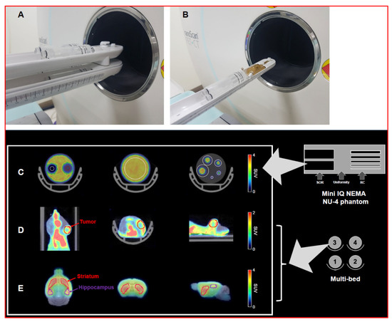 Molecular imaging is used for the diagnosis of oncological, neurological, and cardiovascular diseases [1,2,3,4]. Positron emission tomography (PET) is a molecular imaging technique that enables quantitative measurements of biochemical parameters, such as metabolic changes and concentrations of neurotransmitters [5,6,7]. The demand for preclinical research is increasing worldwide, as it can predict clinical trials and advance our understanding of the pathophysiological mechanisms underlying a specific disease [8].