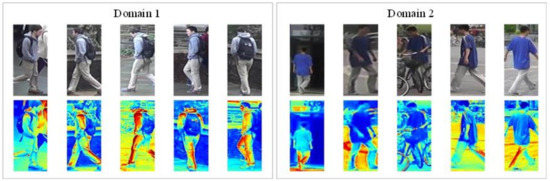 Shared domain person re-ID: Shared domain-based person re-ID methods mainly focus on migrating the images in both source and target domains to a shared feature space [27,28,29,30]. In the shared domain, the consistency of visual feature information is preserved to solve the domain shift issue. To alleviate the dependence of existing methods on the labeled data, Li et al. [29] constructed a depth structure to project the features of different domains into the shared feature space by considering the labeled auxiliary dataset and the dataset of interest (without any label). In the process of shared domain person re-ID, the features from different domains are migrated to the shared feature space, and the similarity measurement of different images is realized in the shared feature space [30].