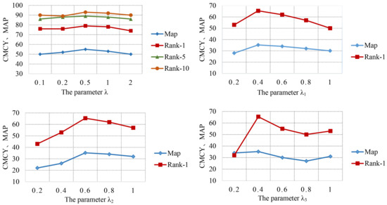 As an index widely used in reflecting the recall rate of the model, mean average precision (mAP) is the mean value of average accuracy (AP) of all query samples [40,41,42,43]. For the query sample probe, the calculation of its AP is mainly determined by the accuracy of recall rate. Specifically, AP of a query sample can be calculated as the area of precision-recall (PR) curve and horizontal axis.