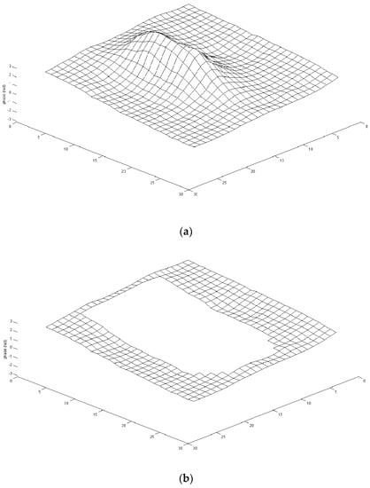 (a) 3D plot of a phase map with sonicated area; (b) 3D plot of the outer region of the phase map in (a) after removing the sonicated area.