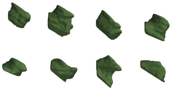 Each green shaped body shows a RWN of an individual patient. The upper part of each body shows the area of the RWM. This exemplary illustration of eight different RWN demonstrates the large observed variability of the RWN shape.