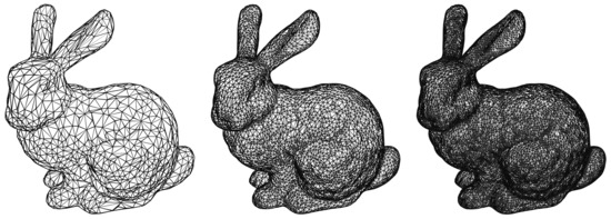Different approximations of the “Stanford Bunny” using triangular meshes.