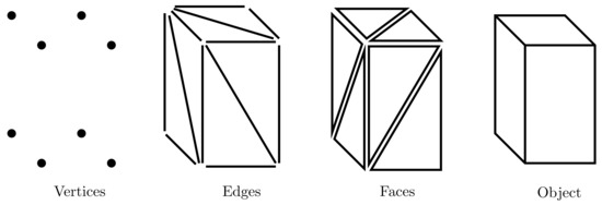 The resulting collection of surfaces is called polygonal mesh or simply mesh. Object rendering can be simplified and sped up using polygonal meshes since all surfaces can be described with linear equations. In particular, triangular meshes are preferred for their simplicity, numerical robustness and efficient visualization [18]. Polygonal meshes can be represented in a variety of ways by using the following core elements: