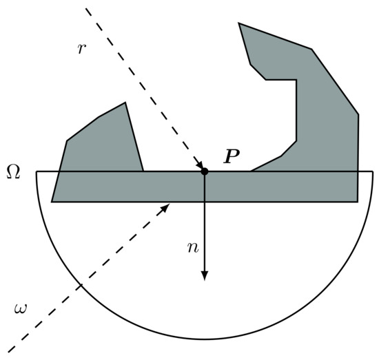 - is a point of the hemisphere and identifies the incoming light direction (with a slight abuse of language, in the following we will sometimes refer to as the ray direction);