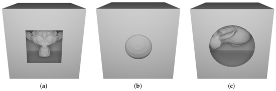 To verify and compare performance in a reproducible way, we decided to create three different 3D models. As shown in Figure 15, a monkey head, a ball and a Stanford Bunny are respectively inserted in a box characterized by a hole in the front side. Since we want to test the ability to detect hidden triangles, we decided to design these ad-hoc models which perfectly fit an ideal scenario.