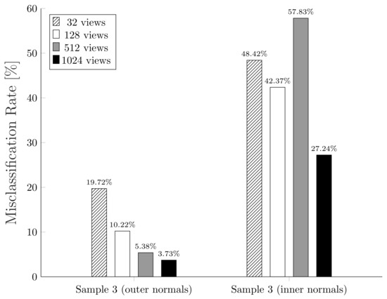Misclassification rates comparison using MeshLab VSD algorithm on Sample 3 with outer and inner normals.