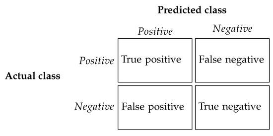 Forgery localization is a particular case of binary classification. Indeed, there are two possible classes for each pixel: forged (positive) or non-forged (negative). Performance measures are usually based on the confusion matrix [51], which has four values, each one corresponding to the four possible combinations of predicted and actual classes, as shown in Figure 4.