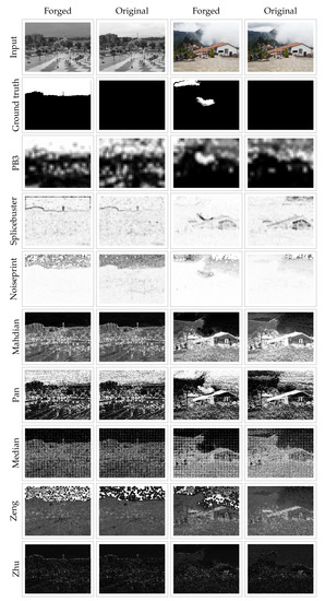 - Zeng, H.; Zhan, Y.; Kang, X.; Lin, X. Image splicing localization using PCA-based noise level estimation. Multimed. Tools Appl. 2017, 76, 4783–4799. [Google Scholar] [CrossRef]