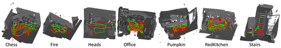 Figure 5. 7 Scene dataset [29]. - Washington RGB-D Object Dataset: The dataset [34] was created with the purpose of providing structure data of real objects. Aside from the isolated objects, the dataset provides 22 annotated sequences of various indoor environment with depth ground truth. Additionally, in this case, RGB-D data were collected using Micorsoft Kinect using aligned 640 × 480 RGB and depth images (Figure 6).