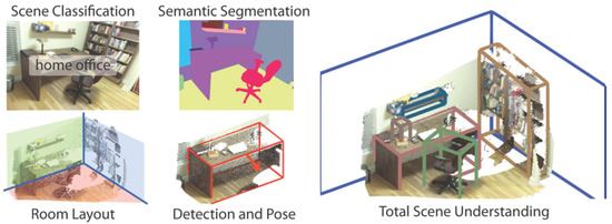 - Silberman, N.; Hoiem, D.; Kohli, P.; Fergus, R. Indoor segmentation and support inference from rgbd images. In European Conference on Computer Vision; Springer: Berlin/Heidelberg, Germany, 2012. [Google Scholar]