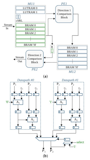 - Tekleyohannes, M.K.; Weis, C.; Wehn, N.; Klein, M.; Siegrist, M. A Reconfigurable Accelerator for Morphological Operations. In Proceedings of the 2018 IEEE International Parallel and Distributed Processing Symposium Workshops (IPDPSW), Vancouver, BC, Canada, 21–25 May 2018; IEEE: Piscataway, NJ, USA, 2018; pp. 186–193. [Google Scholar]