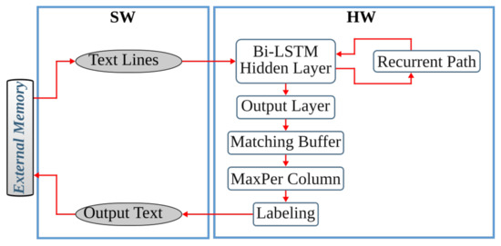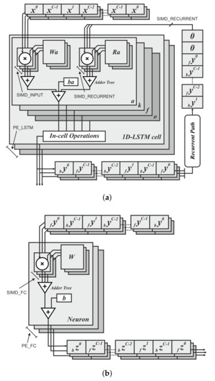 - Rybalkin, V.; Wehn, N.; Yousefi, M.R.; Stricker, D. Hardware architecture of bidirectional long short-term memory neural network for optical character recognition. In Proceedings of the Conference on Design, Automation & Test in Europe, Lausanne, Switzerland, 27–31 March 2017; European Design and Automation Association: Leuven, Belgium, 2017; pp. 1394–1399. [Google Scholar]