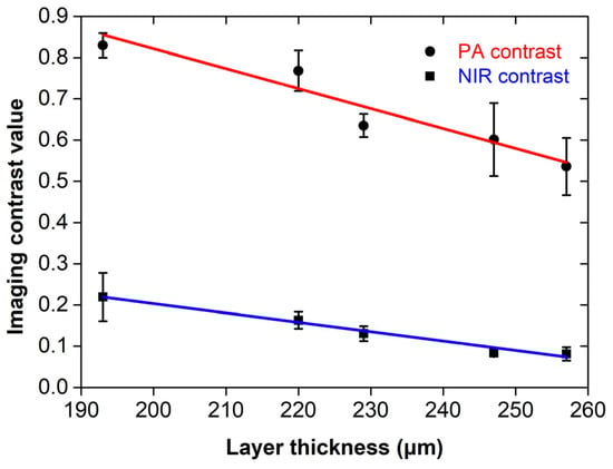 3.3. Evaluation of PA Contrast as a Function of Layer Thickness