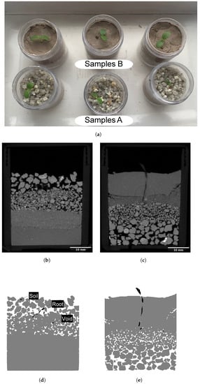 - Anselmucci, F.; Andó, E.; Viggiani, G.; Lenoir, N.; Peyroux, R.; Arson, C.; Sibille, L. Use of X-ray tomography to investigate soil deformation around growing roots. Géotech. Lett. 2021, 11, 96–102. [Google Scholar]