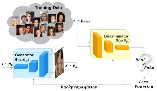 - Goodfellow, I.; Pouget-Abadie, J.; Mirza, M.; Xu, B.; Warde-Farley, D.; Ozair, S.; Courville, A.; Bengio, Y. Generative Adversarial Nets. In Proceedings of the Advances in Neural Information Processing Systems, Montreal, QC, Canada, 8–13 December 2014; pp. 2672–2680. [Google Scholar]
